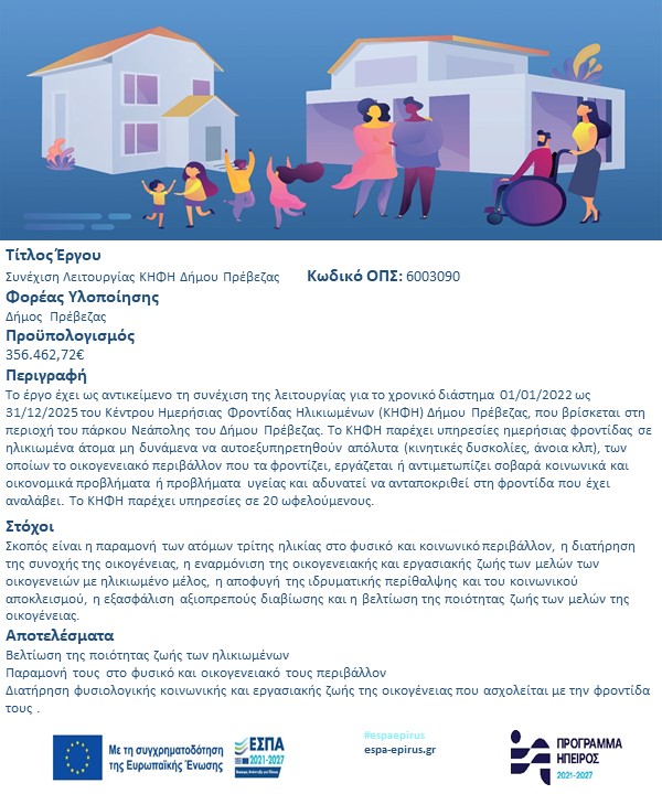 Κέντρο Ημερήσιας Φροντίδας Ηλικιωμένων (Κ.Η.Φ.Η.) Δήμου Πρέβεζας