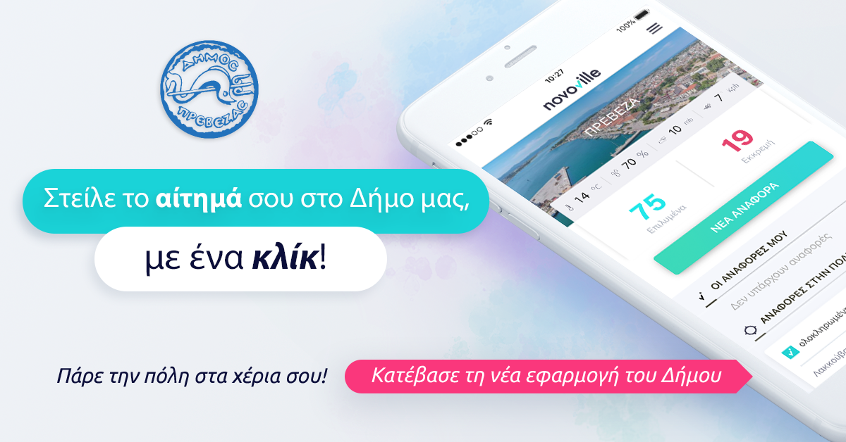 Με το νέο ολοκληρωμένο σύστημα διαχείρισης αιτημάτων Novoville μπορείτε να επικοινωνείτε άμεσα με το Δήμο μας, ανα πάσα στιγμή. Το σύστημα επιτρέπει τη γρήγορη και εύκολη καταχώρηση ζητημάτων καθημερινότητας που αφορούν το Δήμο, με στόχο την ταχύτερη δυνατή αντιμετώπισή τους από τις υπηρεσίες μας.